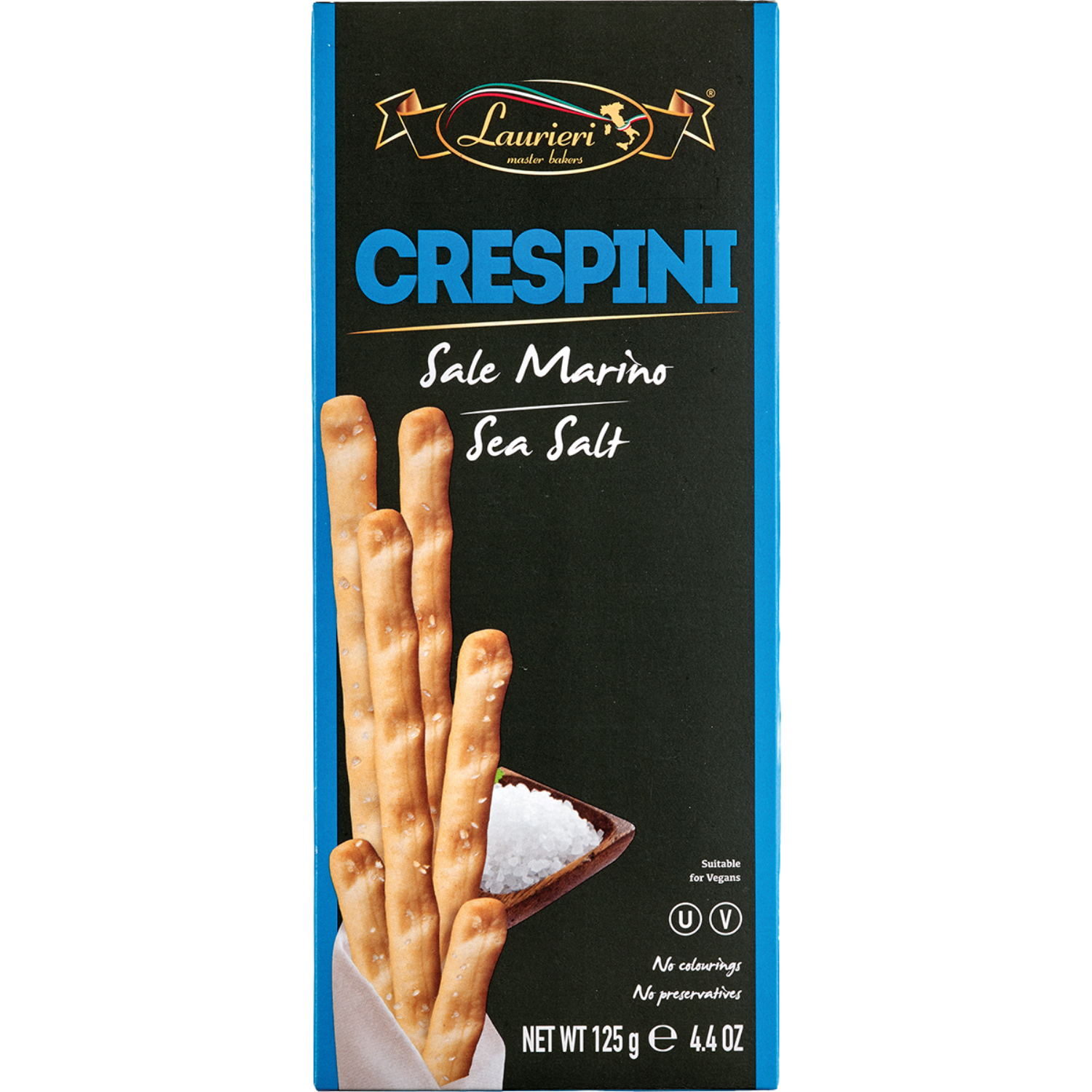 Die Crestini Sale von Laurieri sind kleine, knusprige Weißbrotscheiben mit einer feinen Prise Meersalz.