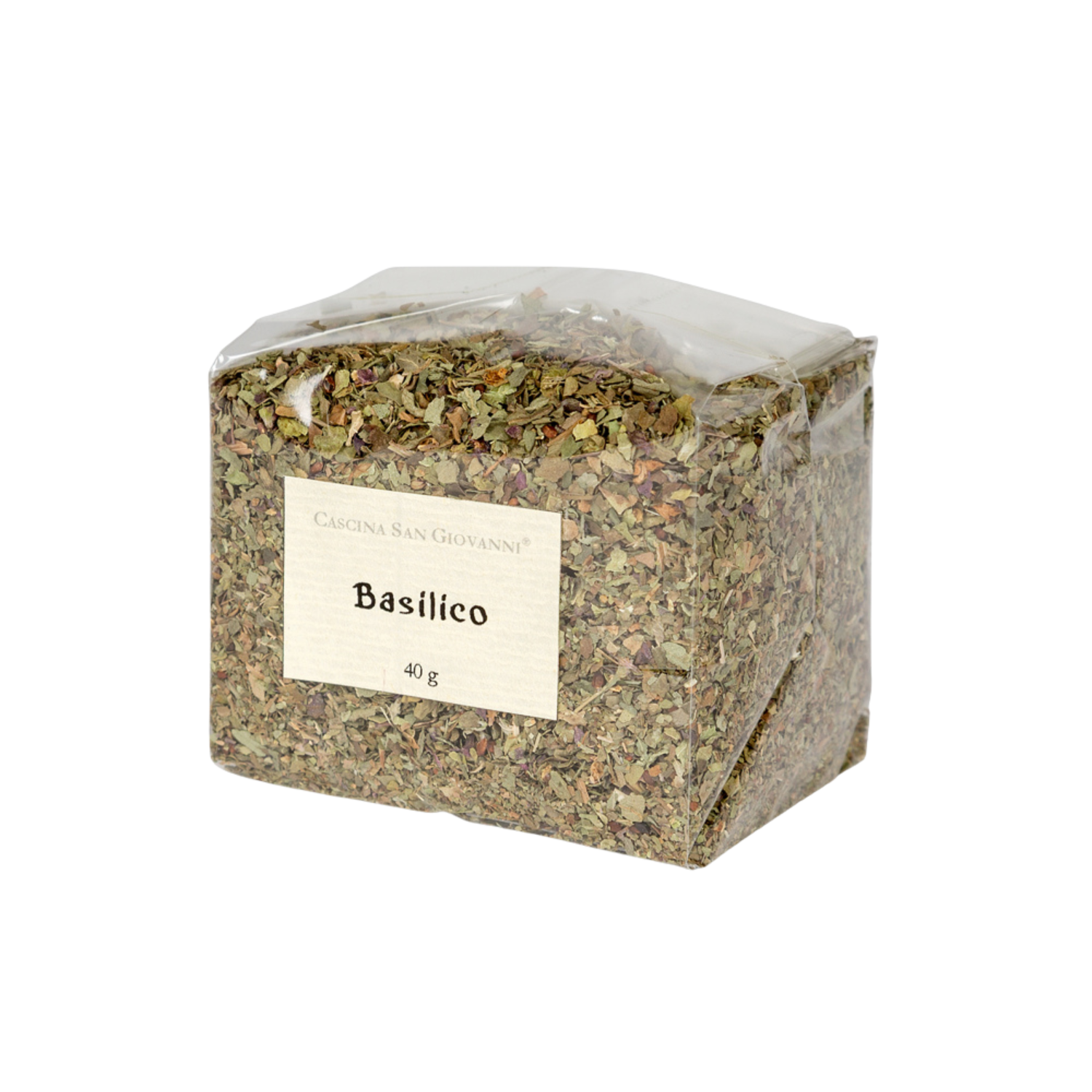 Aromatisches Kraut mit intensivem Basilikumgeschmack, sorgfältig getrocknet, um seine frische, würzige Note zu bewahren.