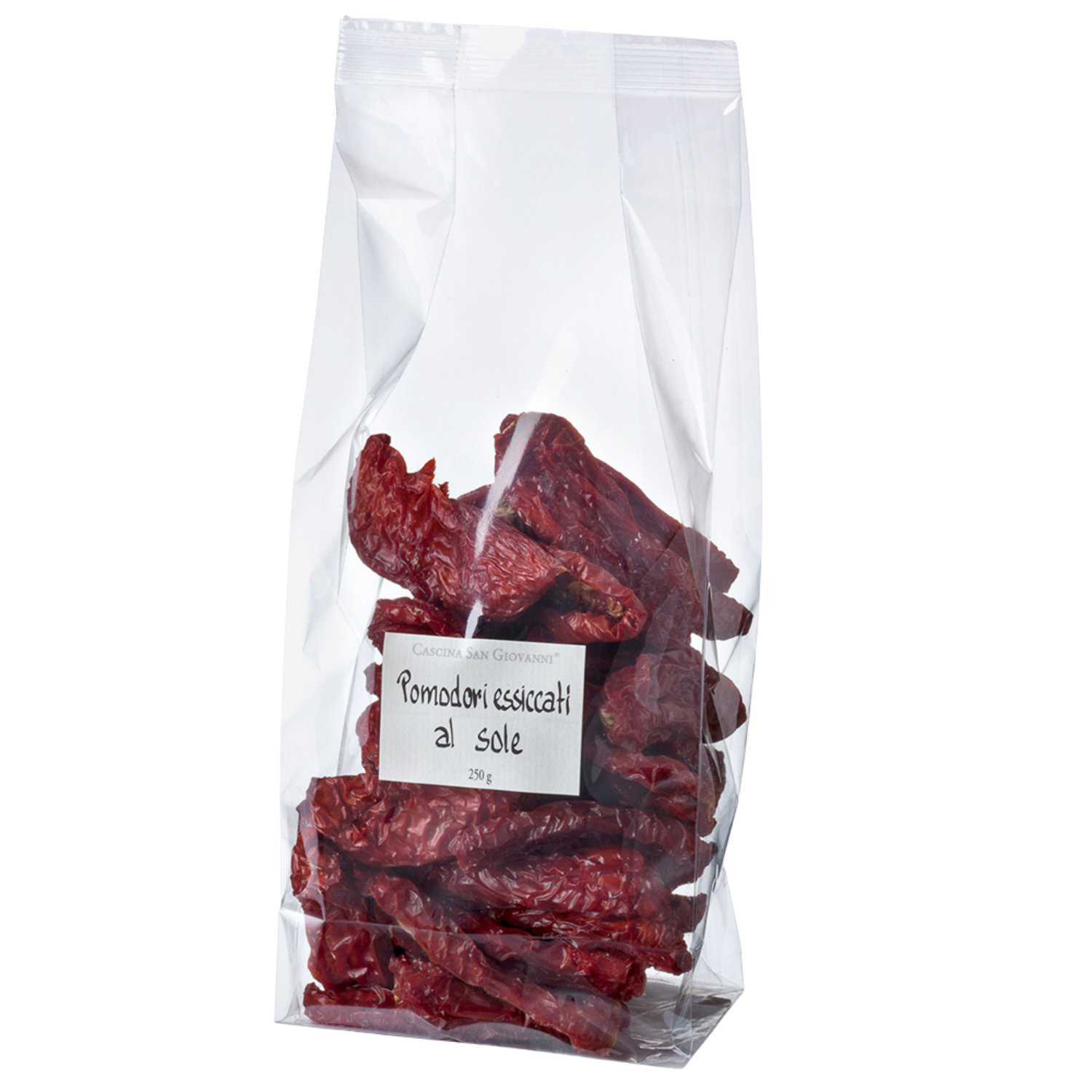 Sorgfältig sonnengetrocknete Tomaten aus Italien, veredelt mit einer Prise Salz, die ihren natürlichen, intensiven Geschmack unterstreicht.